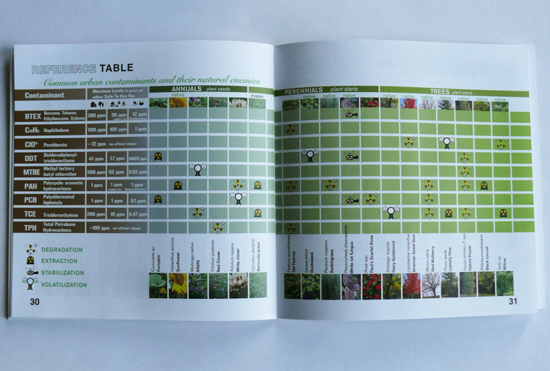 We put together a field guide to phytoremediation based on our research and experience at La Finca del Sur this summer. It’s a 40+ page booklet that translates a lot of scientific research into comprehensible language and graphics. Like for instance,