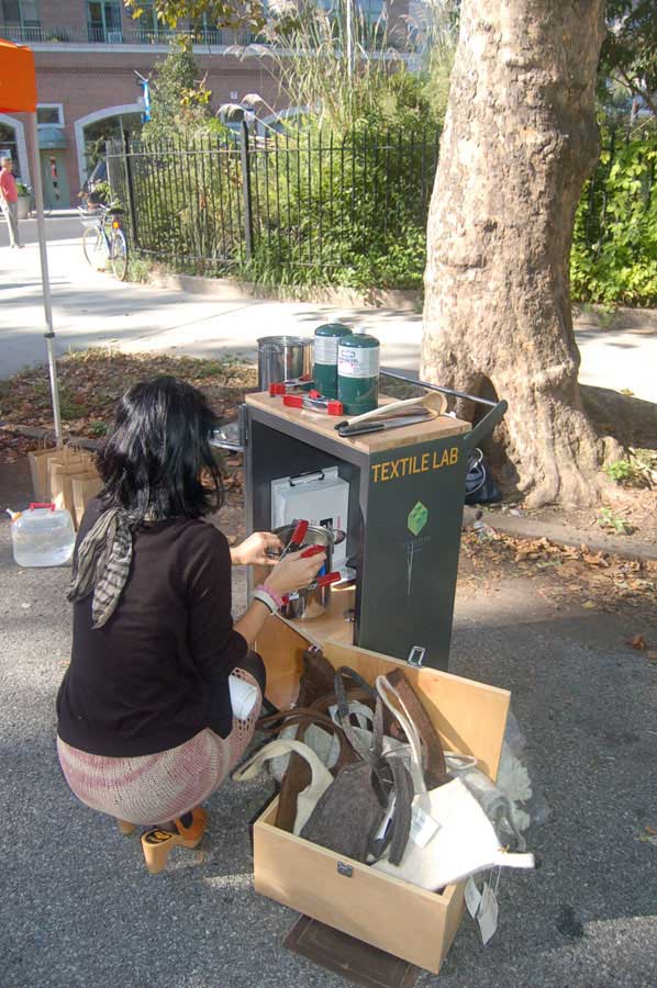Below are pictures of the GrowNYC Loop De Loop Recycling Event at the Union Square Pavilion. Textile Lab dyed market bags made from reclaimed t shirts that were made on site by the Textile Arts Center and greenmarket shoppers! Post navigation ← Previous PostNext Post →