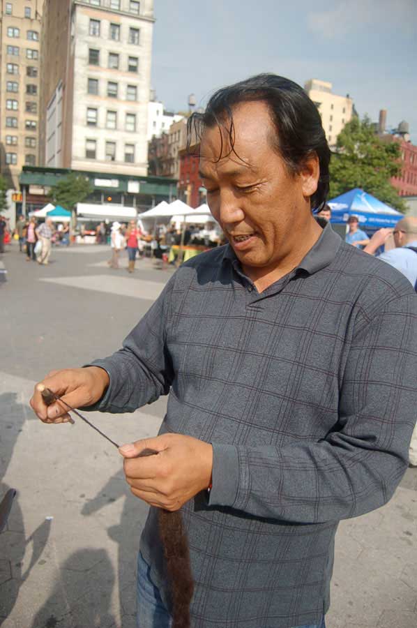 A visitor named Tasmi demonstrated Tibetan spinning and made us a drawing of a traditional Tibetan spindle
