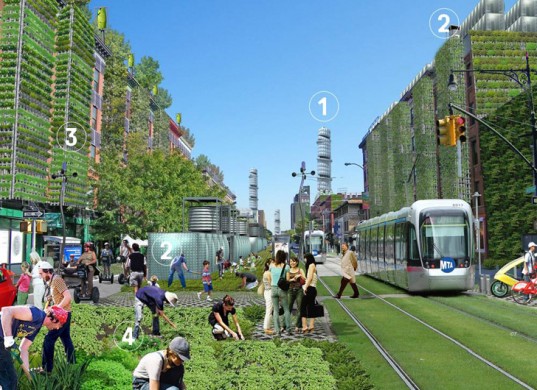 The website inhabitat.com recently reported on an audacious proposal by the organization Terreform to take sustainability to the nth level. Aided by a slideshow of radically imaginative renderings of what the city might look like if such a project were brought to fruition, the article states the plan, called New York City Steady State (NYCSS), aims to make New York City entirely self-sufficient by, among other things, utilizing nearly every bare horizontal and vertical surface in the city, as well as creating huge agricultural towers to be used as high-rise farming collectives. The full project proposal can be viewed here.