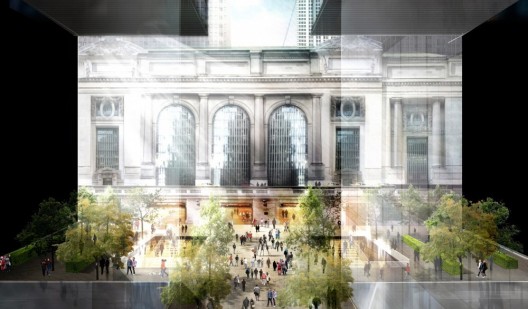To celebrate Grand Central’s 100th birthday, the Municipal Art Society challenged three architecture firms, Skidmore Ownings and Merrill (SOM), WXY Architecture & Urban Design, and Foster & Partners, to present their visions for the future of Grand Central Terminal. The design challenge coincides with a rezoning proposal by the Bloomberg Administration, known as Midtown East, which would make it easier to demolish aging buildings, and allow for new, high-rise development in the area around Grand Central Terminal.